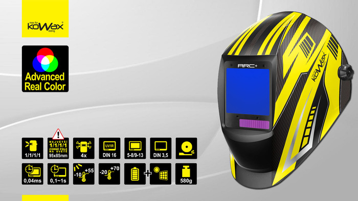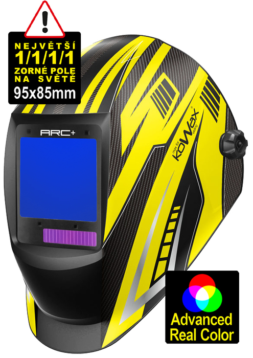 Nová kukla KWX820ARC++ přináší největší 1/1/1/1 zorné pole na světě v kombinaci se zobrazením reálných barev a nový exkluzivní design v kombinaci KOWAX žluté a karbonu.